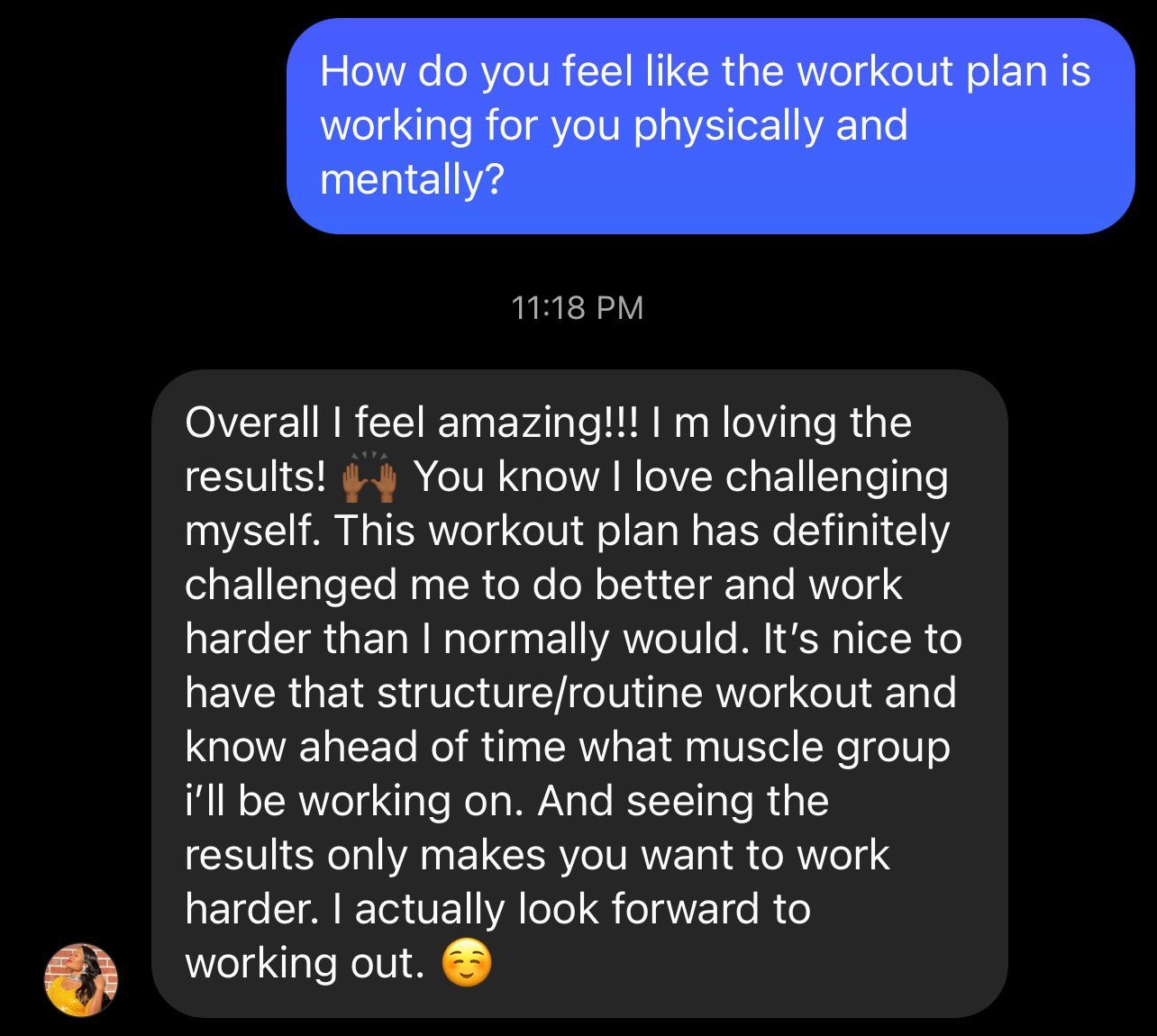 Say goodbye to one-size-fits-all workouts. I'll will work with you to create a customized fitness plan tailored to your goals, preferences, and lifestyle.